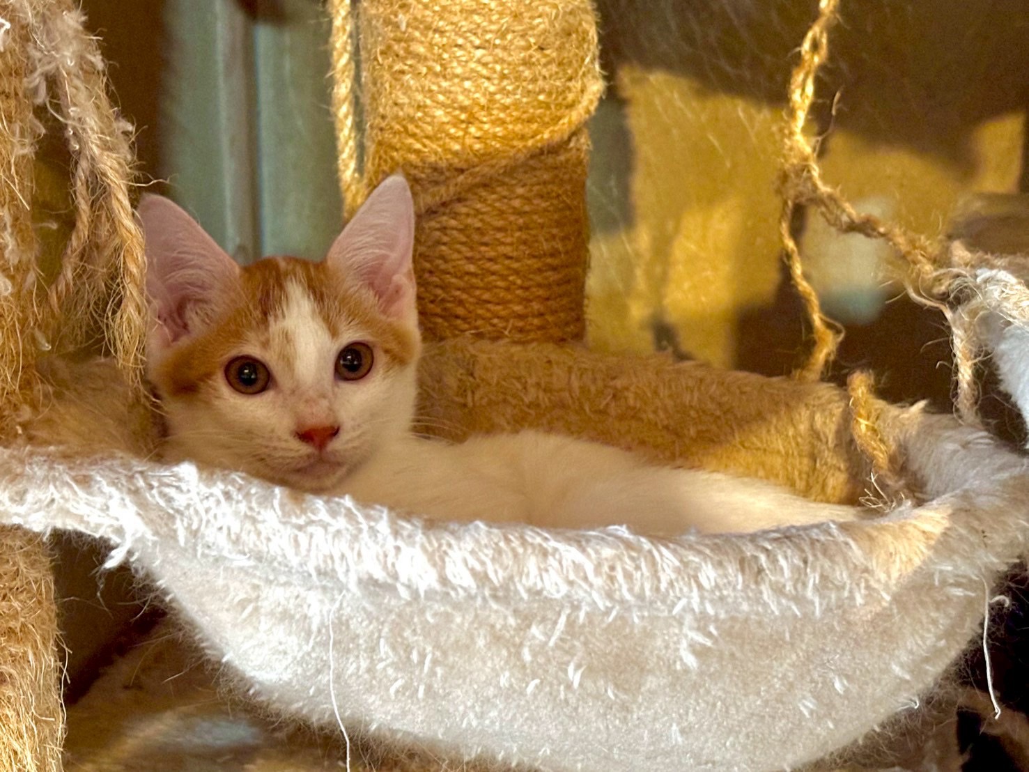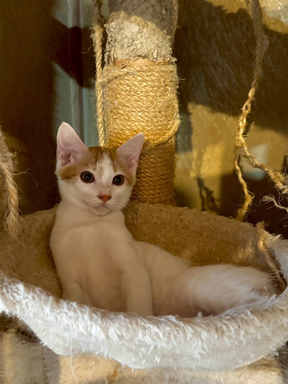 茶白の空くんはだいぶ慣れて抱っこしても逃げません。