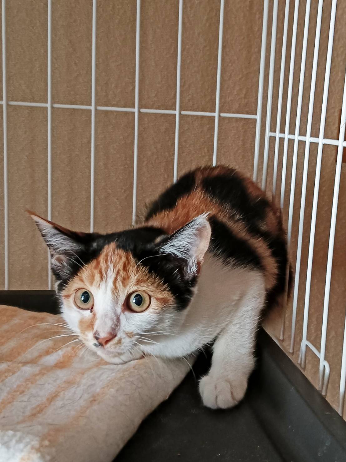 まだ保護したばかりで人が怖くて縮こまっていますが、人を攻撃するようなことはしません。