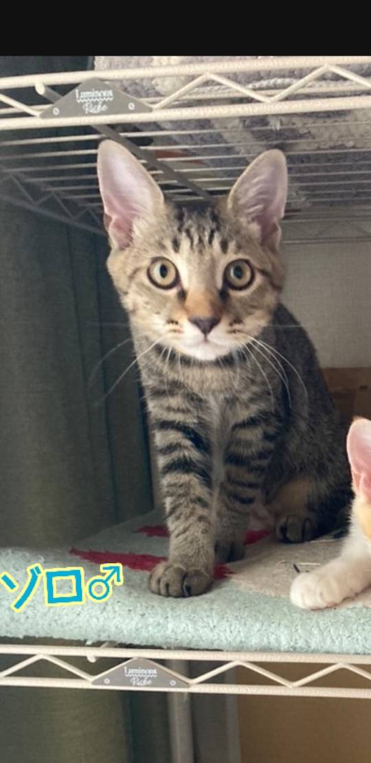 怖がりでビビり、少し鈍臭いですがよく動きます。慣れてくると、そばに来てお腹を出してゴロンとします。お膝の上でゴロゴロなきますが抱っこは苦手⁉くりくりおメメとZ型の尻尾がチャームポイント✨