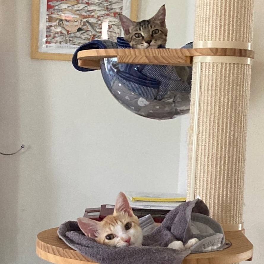 4ヶ月の兄弟猫。2匹でよく遊びます。リボンの猫じゃらしやトンネルが大好きです。2匹一緒に飼ってくれる方希望します。