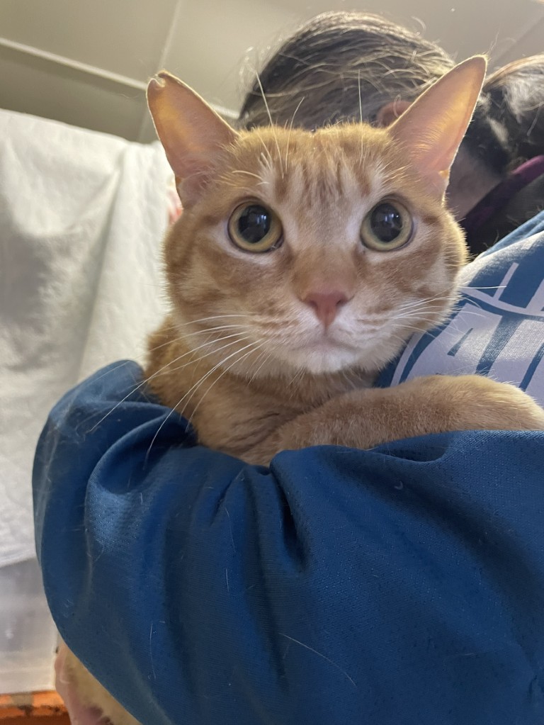 少し怖がりですが抱っこ出来ます。約5キロ。