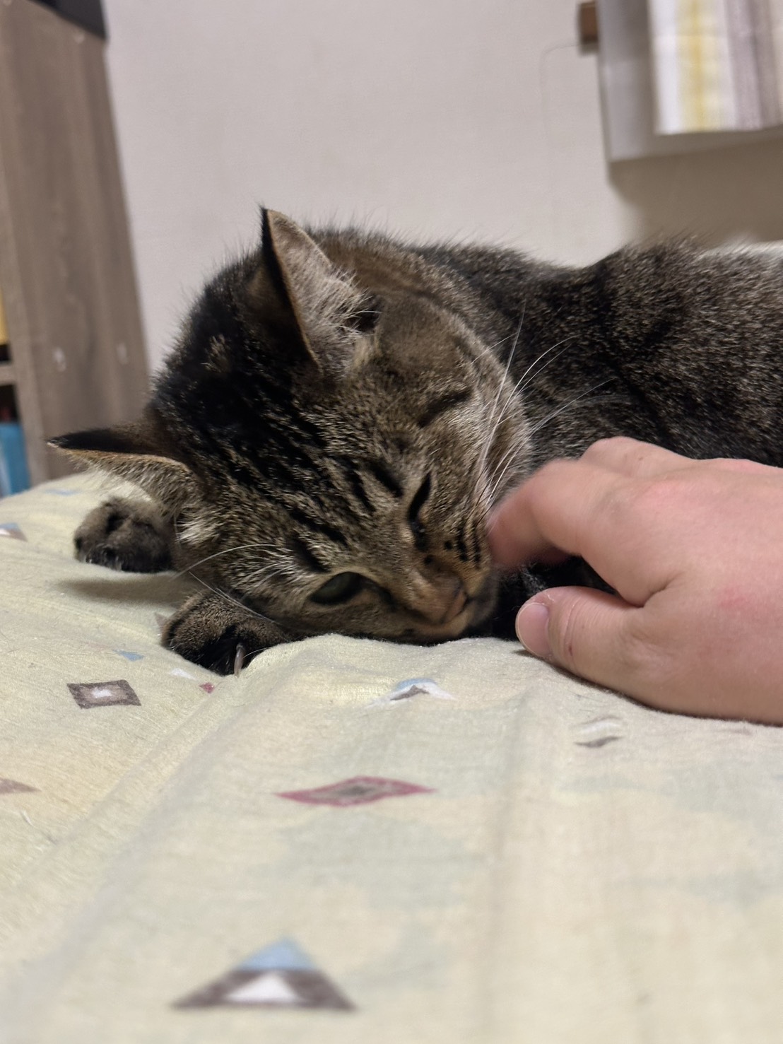 人馴れ修行中ですが、顔周りの撫で撫でが大好き♡