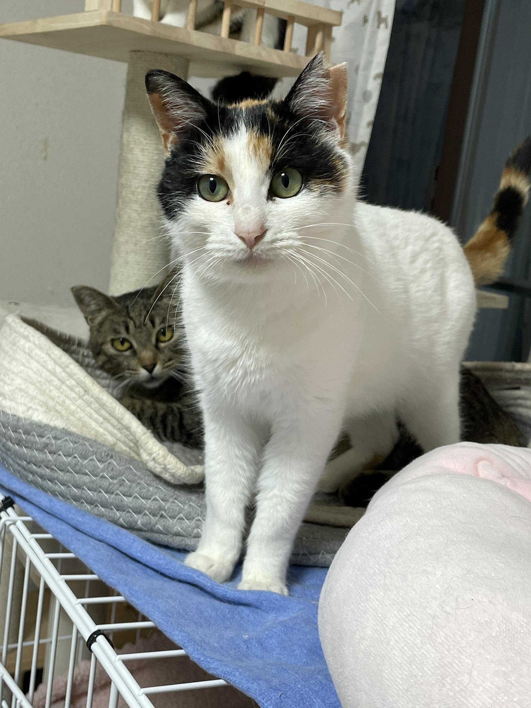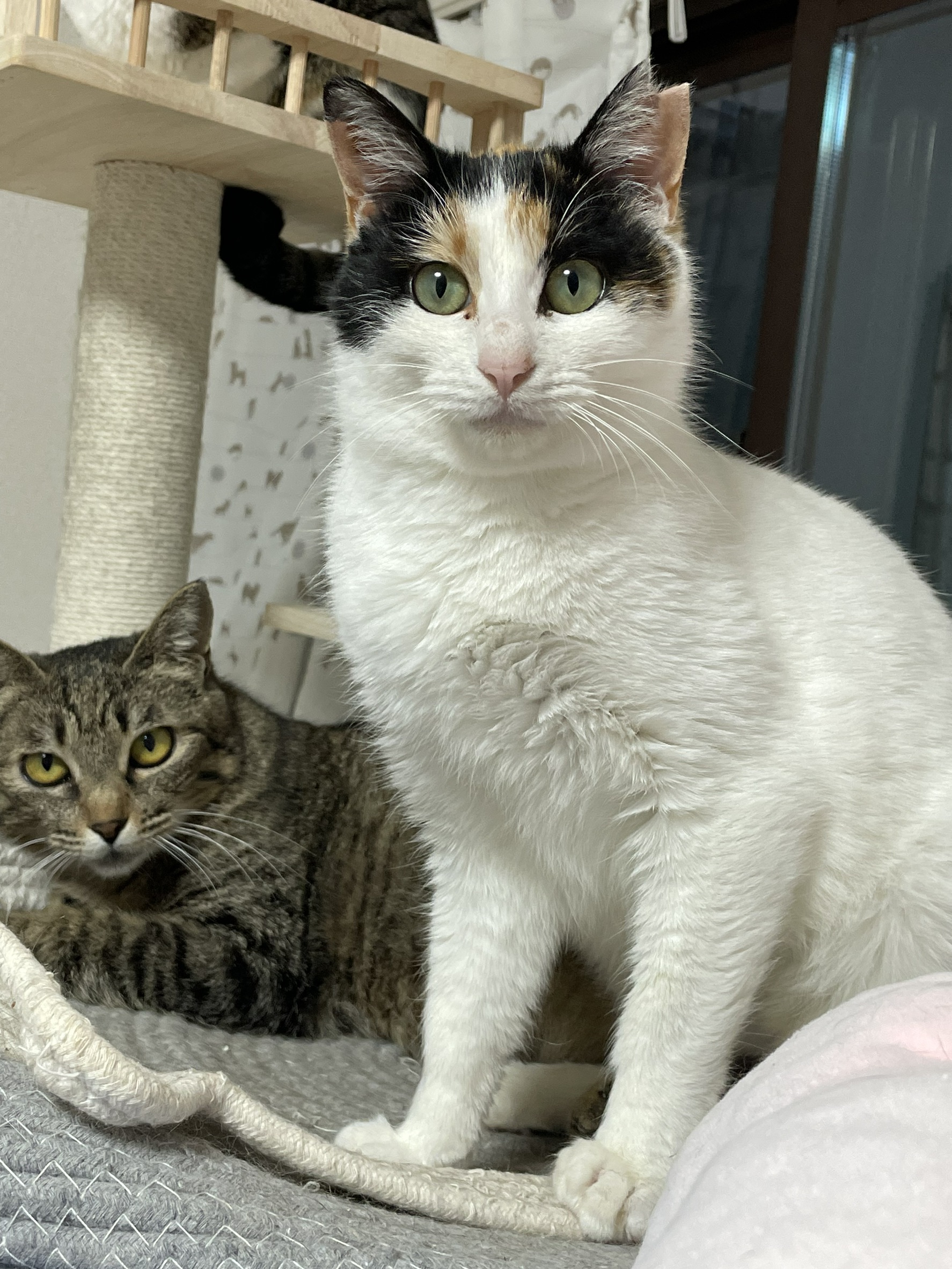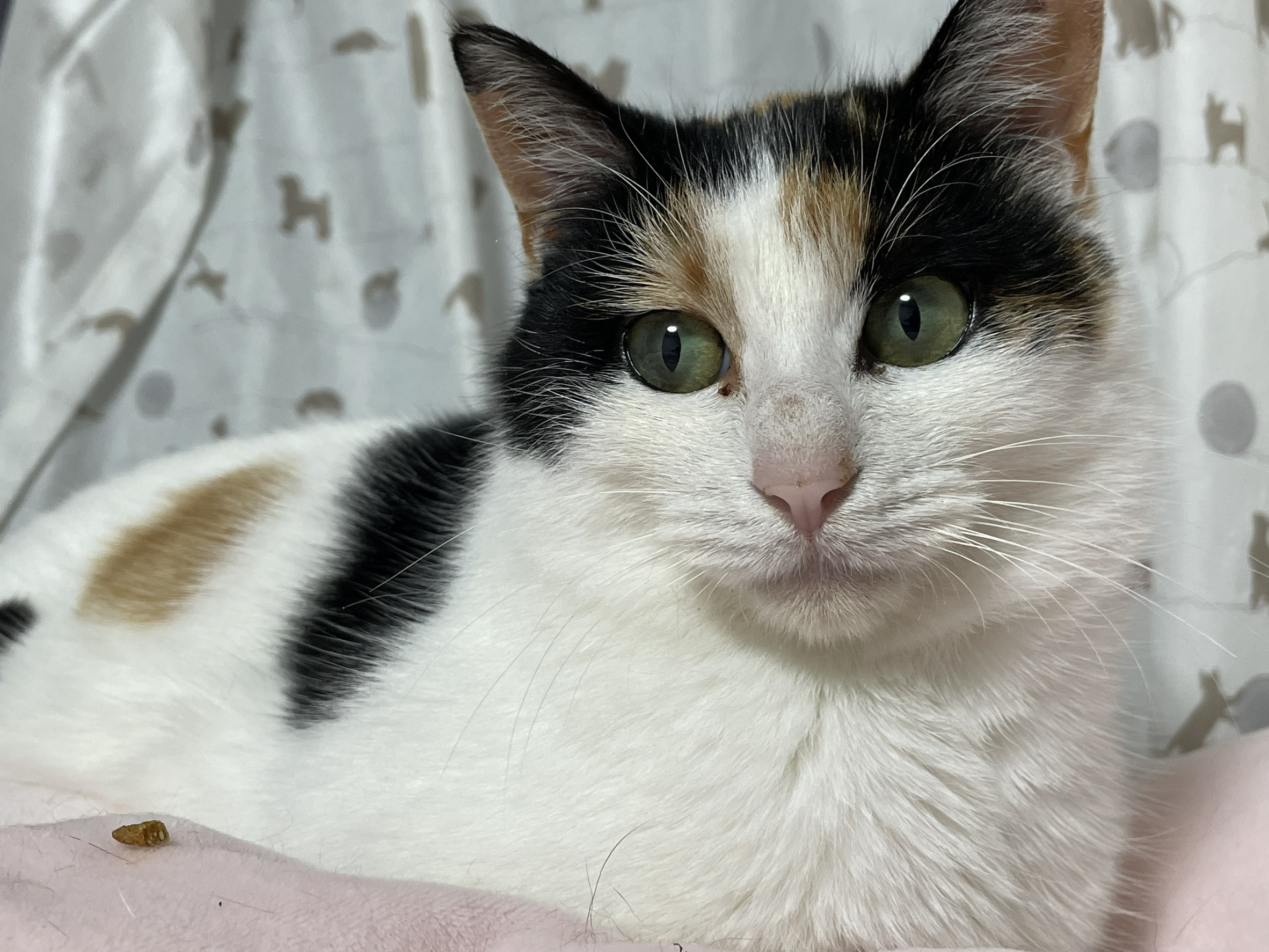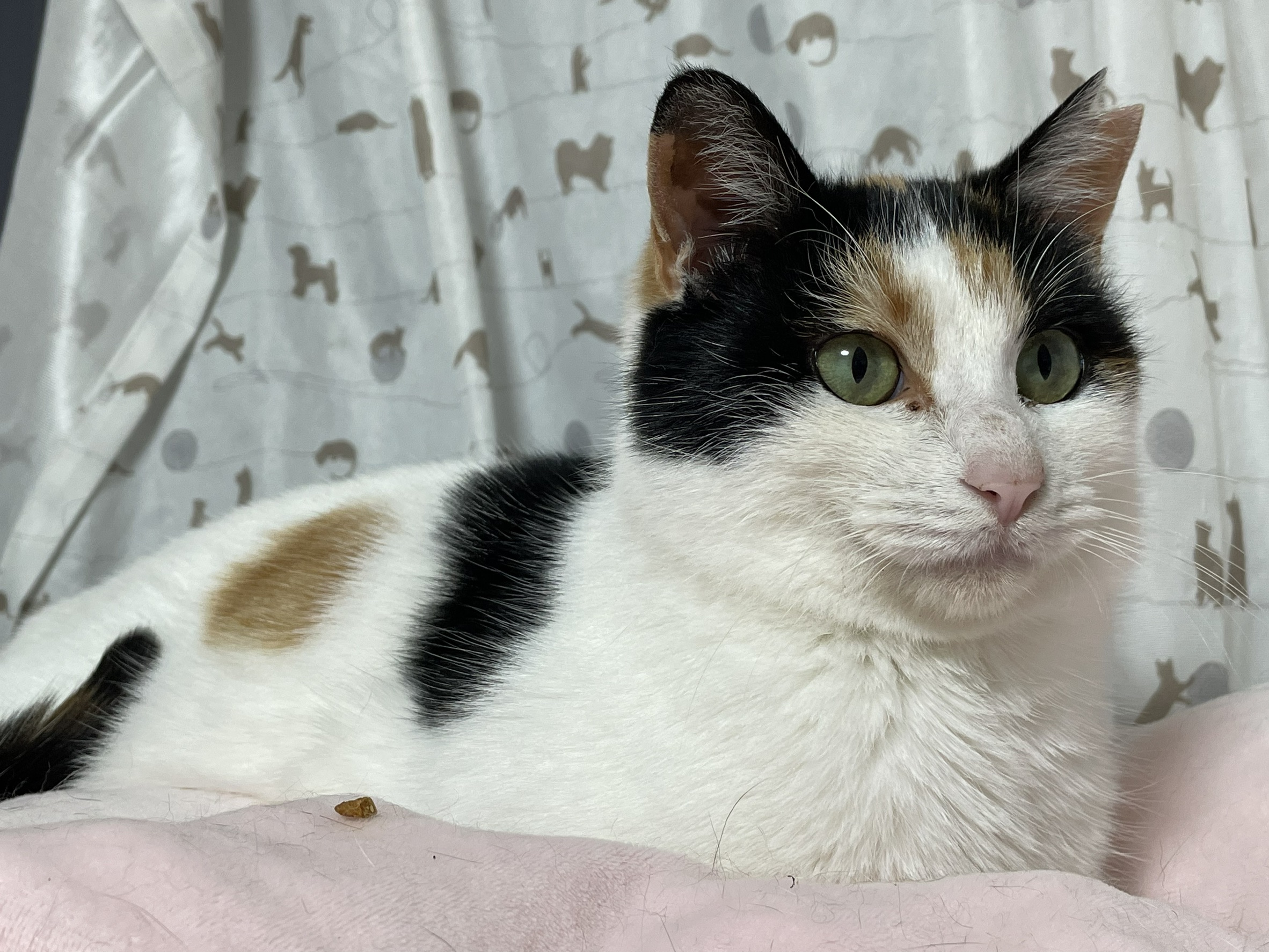 とても大人しく清楚な美人さんです♪白が多く、しっぽは三毛でとても長く美しいです♪